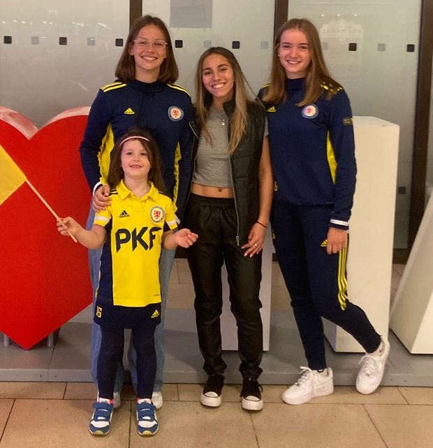 Lourdes Estigarría (Bildmitte) wird das Team der 1. Damen im Feldhockey von Eintracht Braunschweig in der kommenden Saison schlagkräftig unterstützen. Die herausragende argentinische Jugendnationalspielerin wurde dieses Wochenende herzlich von ihren neuen Teammitgliedern am Flughafen in Hannover empfangen.