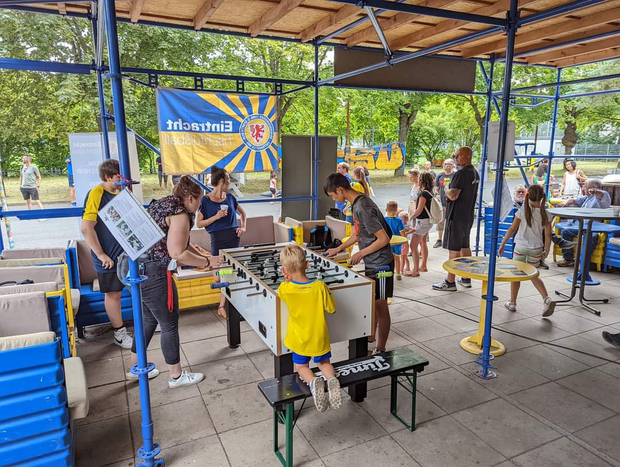Am Mittwoch wurde von der AWO Braunschweig und Robin Koppelmann am Fanhaus nahe des Eintracht-Stadions ein Kinder- und Jugendtag veranstaltet, bei dem die Tischfußballer und Tischfußballerinnen der Abteilung mit einem Stand vertreten waren.