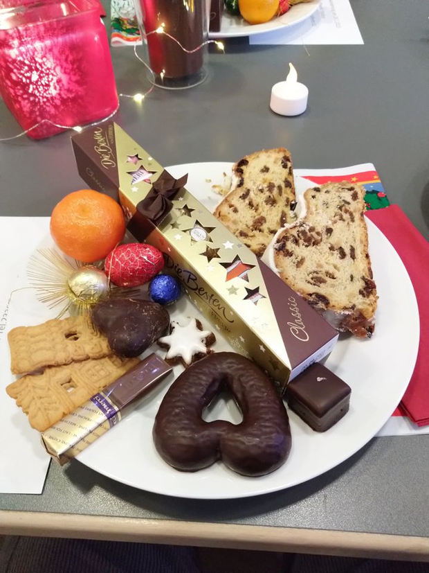 Adventkaffee mit Stolle, Gebäck und Weihnachtslied .