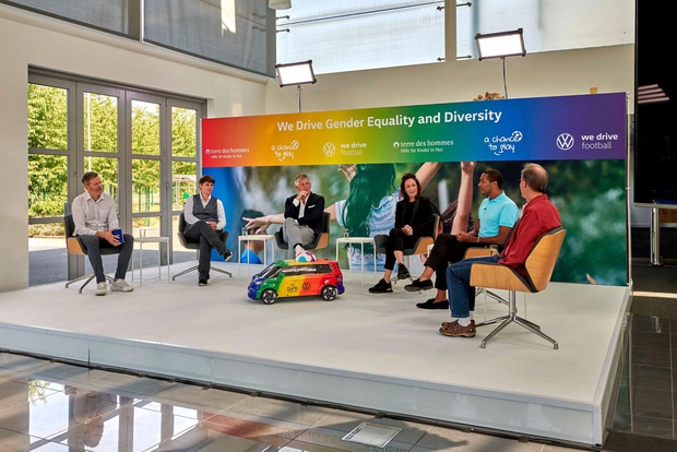 Volkswagen ist Partner der deutschen Nationalmannschaft und startete im Vorfeld der Europameister der Frauen eine starke und gleichzeitig provokante Kampagne: Frauen spielen Fussball #keinFrauenfussball. Die Intention war klar, eine gesellschaftliche Diskussion anzuregen. Um der Kampagne Nachdruck zu verleihen, lud Volkswagen mit Volkswagen UK im Rahmen der Gruppenphase zu einem Austausch und einer Podiumsdiskussion zum Thema Gleichberechtigung und Diversität ein. Mit dabei waren Corinna Griese, Vorstand der Fussballabteilung, sowie Victoria Wiedermann, Kapitänin der 1. Fussball Damen.